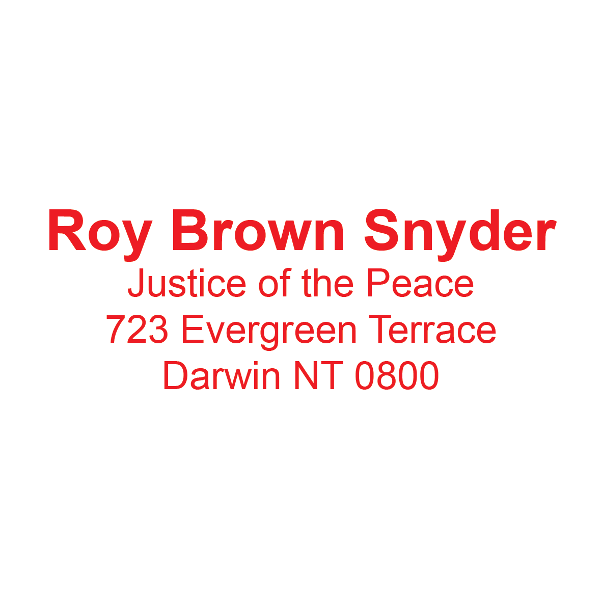 Northern Territory Justice Of The Peace Stamp with Name and Registration Address