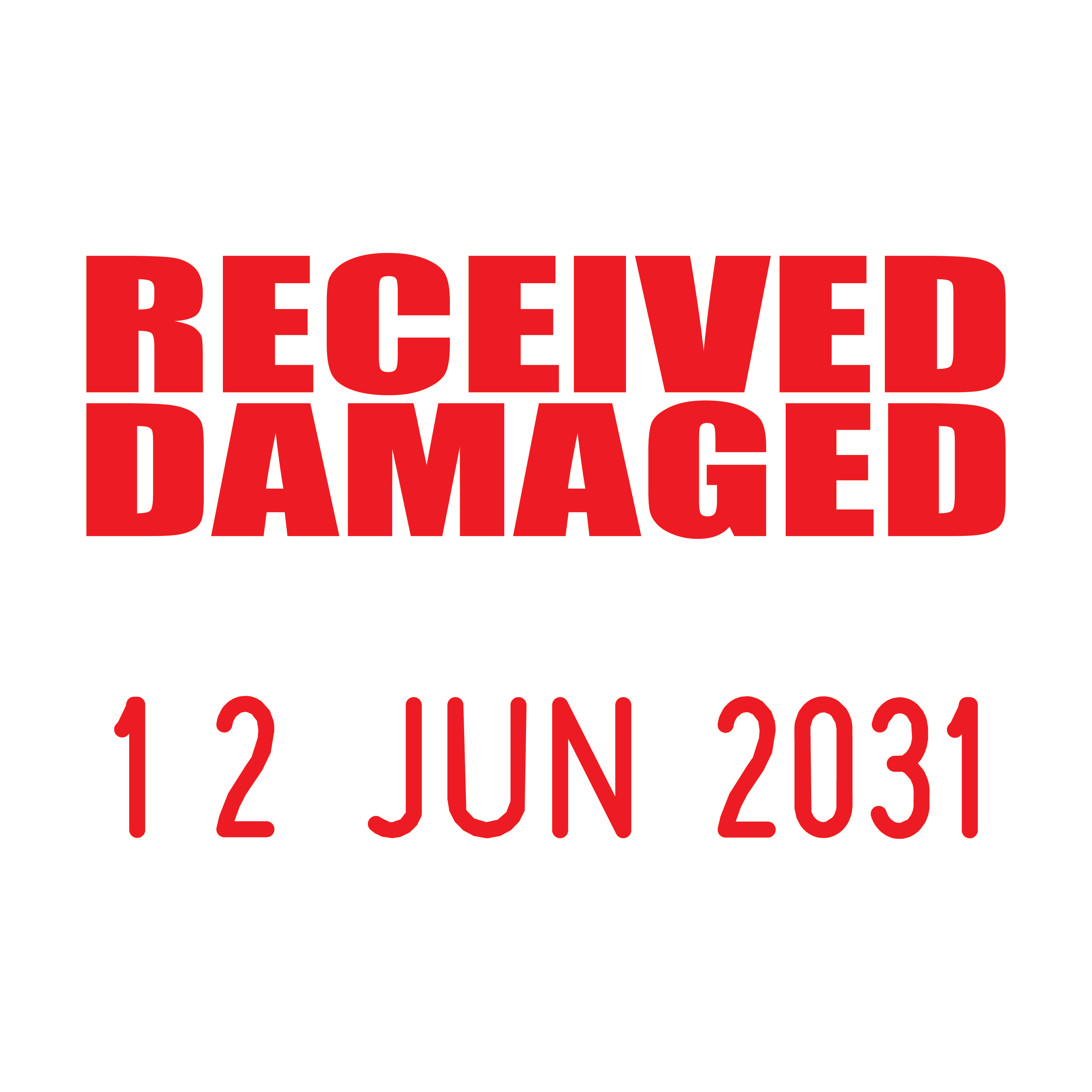 Ensure a clear and accurate documentation process for damaged goods with the "Received Damaged" Mini Date Stamp. This compact and precise stamp, measuring 23 x 15mm with a 23 x 7mm text area and 3.8mm high date characters, is perfect for businesses that handle shipments and returns.