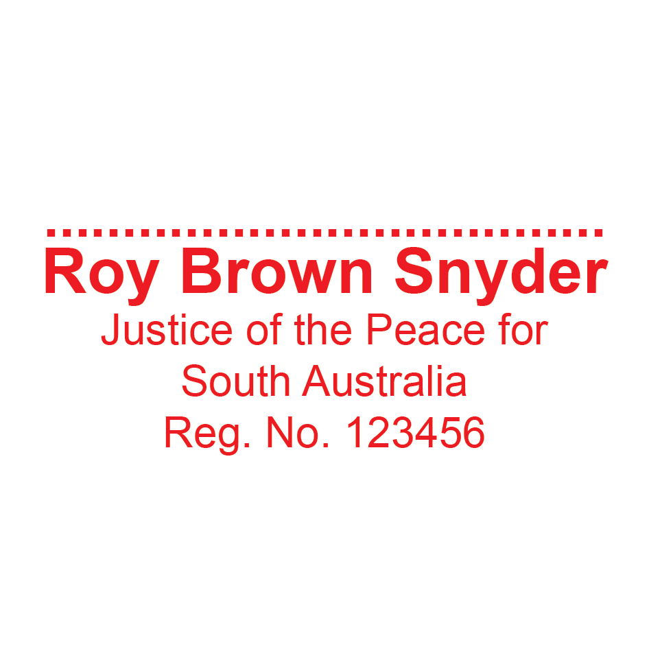 South Australia Justice Of The Peace Stamp With Name, Registration Number and Signature line