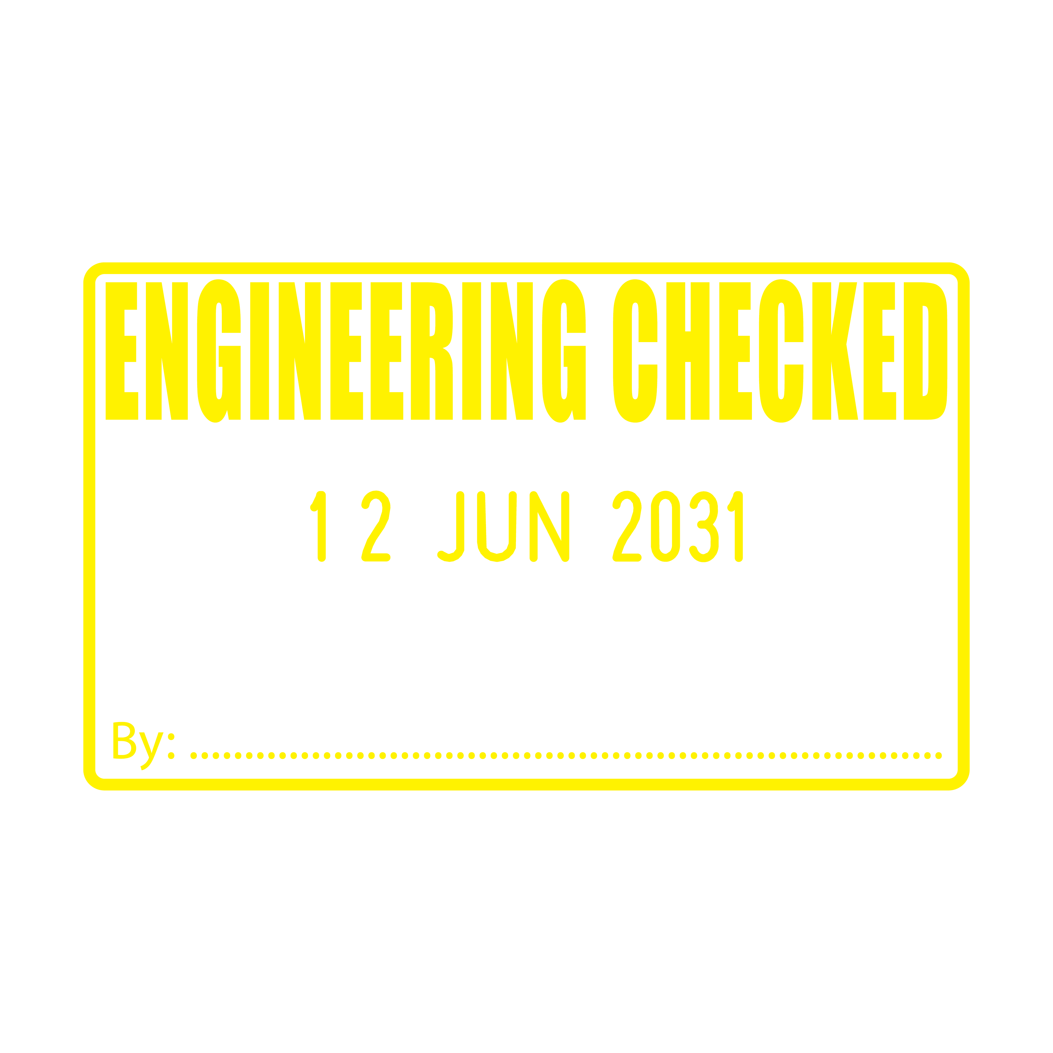 Our Engineering Checked Date Stamp is the professional's choice for ensuring meticulous record keeping of engineering inspections. This quality self-inking stamp displays the term 'ENGINEERING CHECKED' along with a changeable date, all encapsulated in a distinct 50mm x 30mm impression.