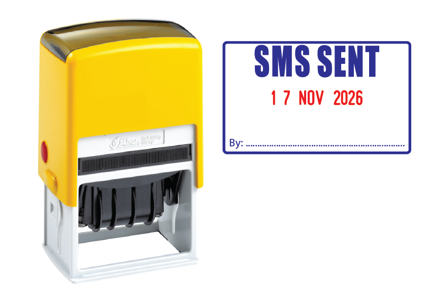 The SMS Sent Date Stamp is an invaluable tool for organisations that regularly utilise text message communication with clients, customers, or colleagues. This self-inking stamp leaves a large 50 x 30mm impression, clearly indicating "SMS SENT" in bold letters, coupled with a changeable date. This ensures your physical records accurately reflect the digital actions taken.