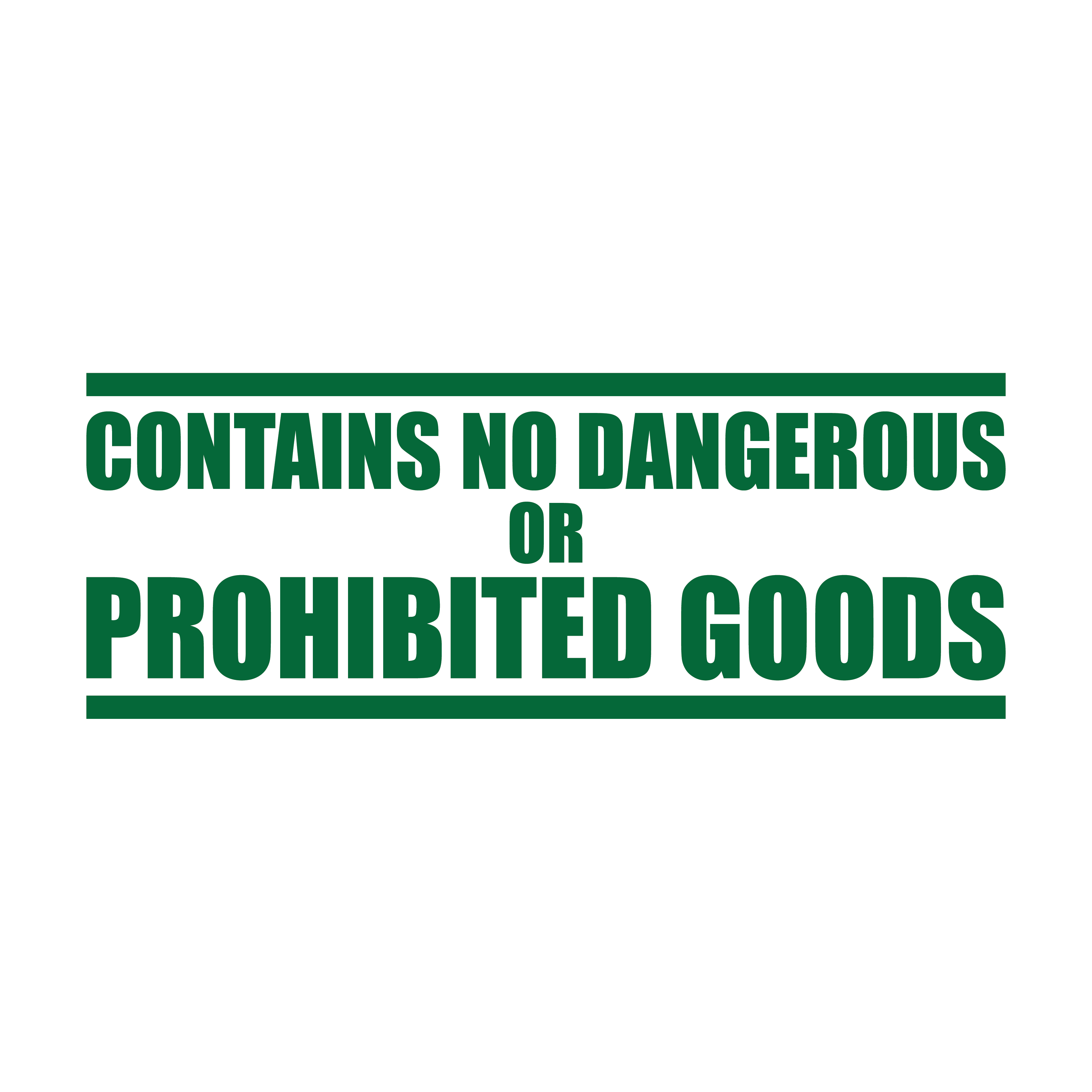 Ensure safety and compliance in your shipping process with our 'Contains No Dangerous or Prohibited Goods' Stamp. This stamp provides a clear, bold declaration on your packages, informing handlers and recipients that the contents meet safety standards.