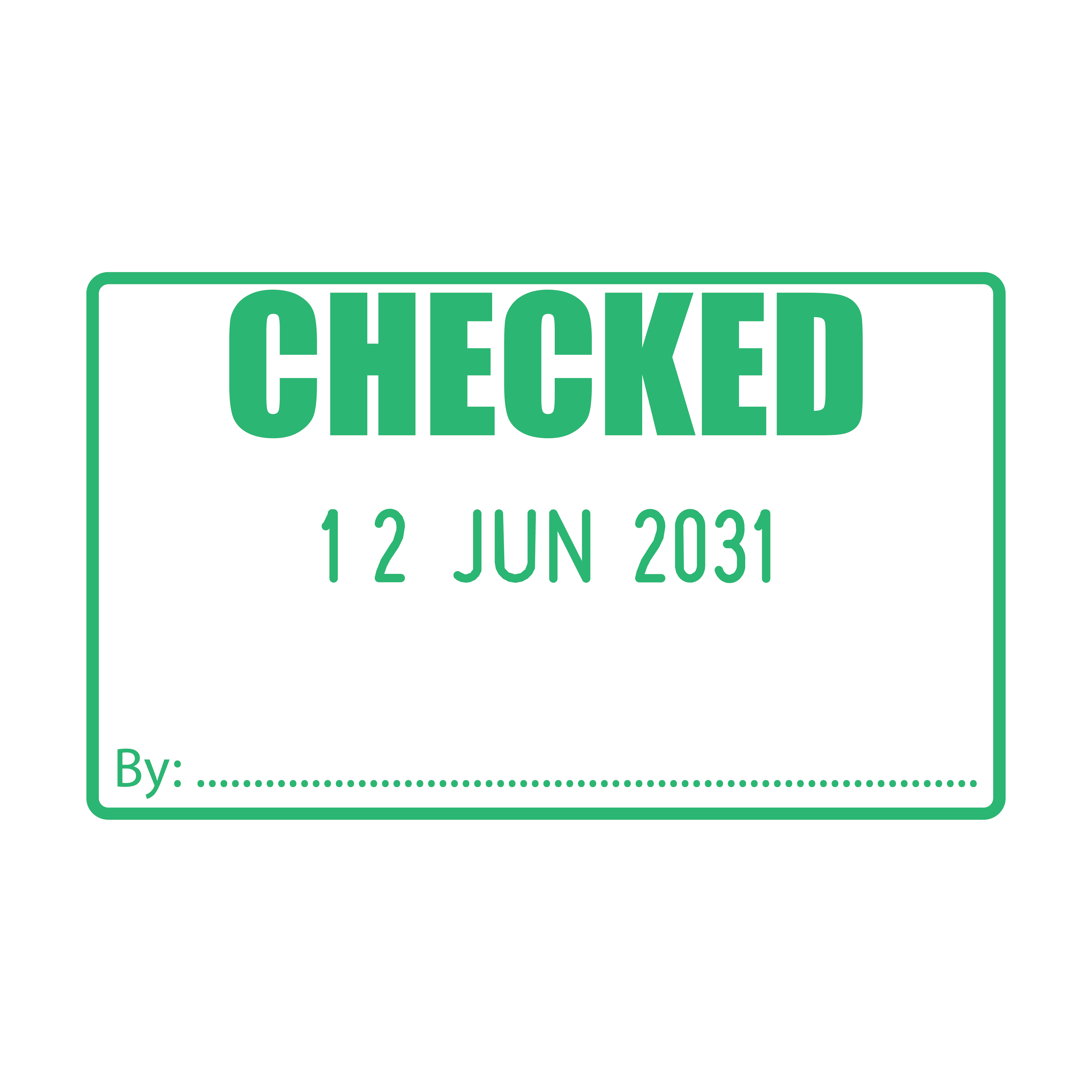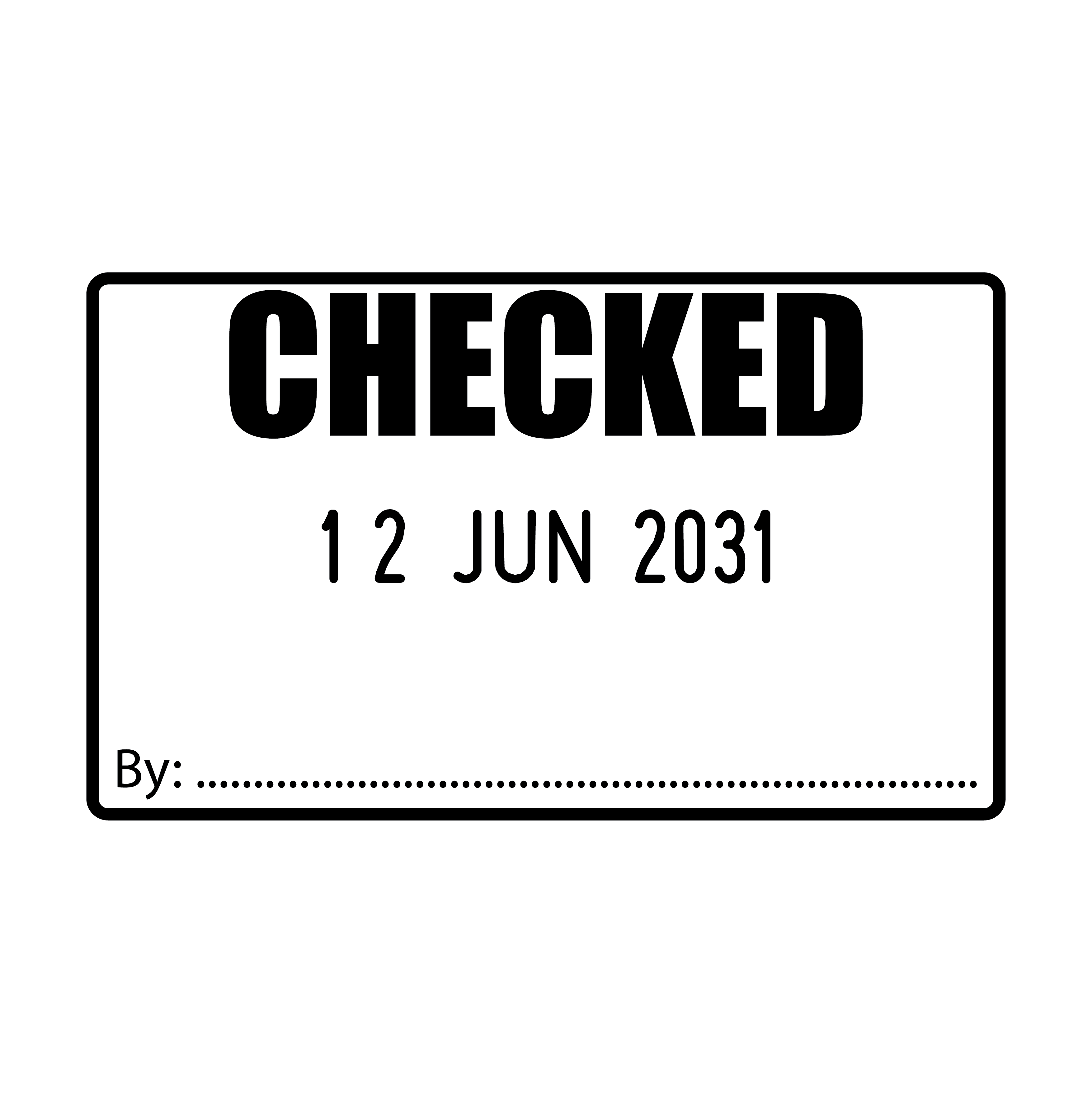 The stamp impression measures 50mm x 30mm, leaving bold, unambiguous markings. The design features the word "Checked" in a noticeable font, with a changeable date at the centre. This structure allows you to leave precise records of the checking process, contributing to the clarity and traceability of your operations.
