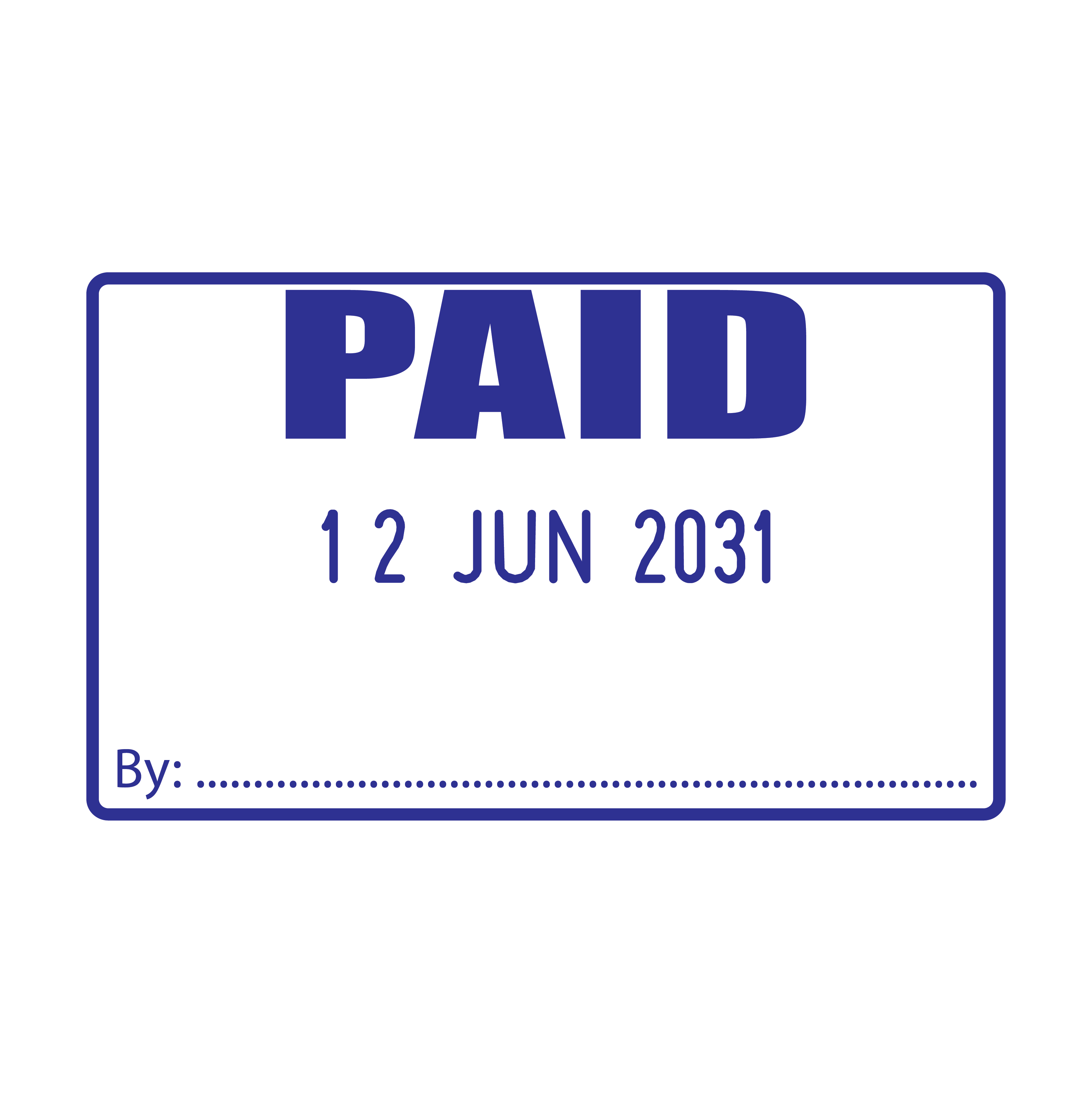The stamp features a bold 'PAID' text alongside a central, changeable date. Together, they form a clear 50mm x 30mm impression, providing undeniable evidence of payment. It's an ideal solution for accounting departments, retail businesses, or any setting where financial transactions occur regularly.