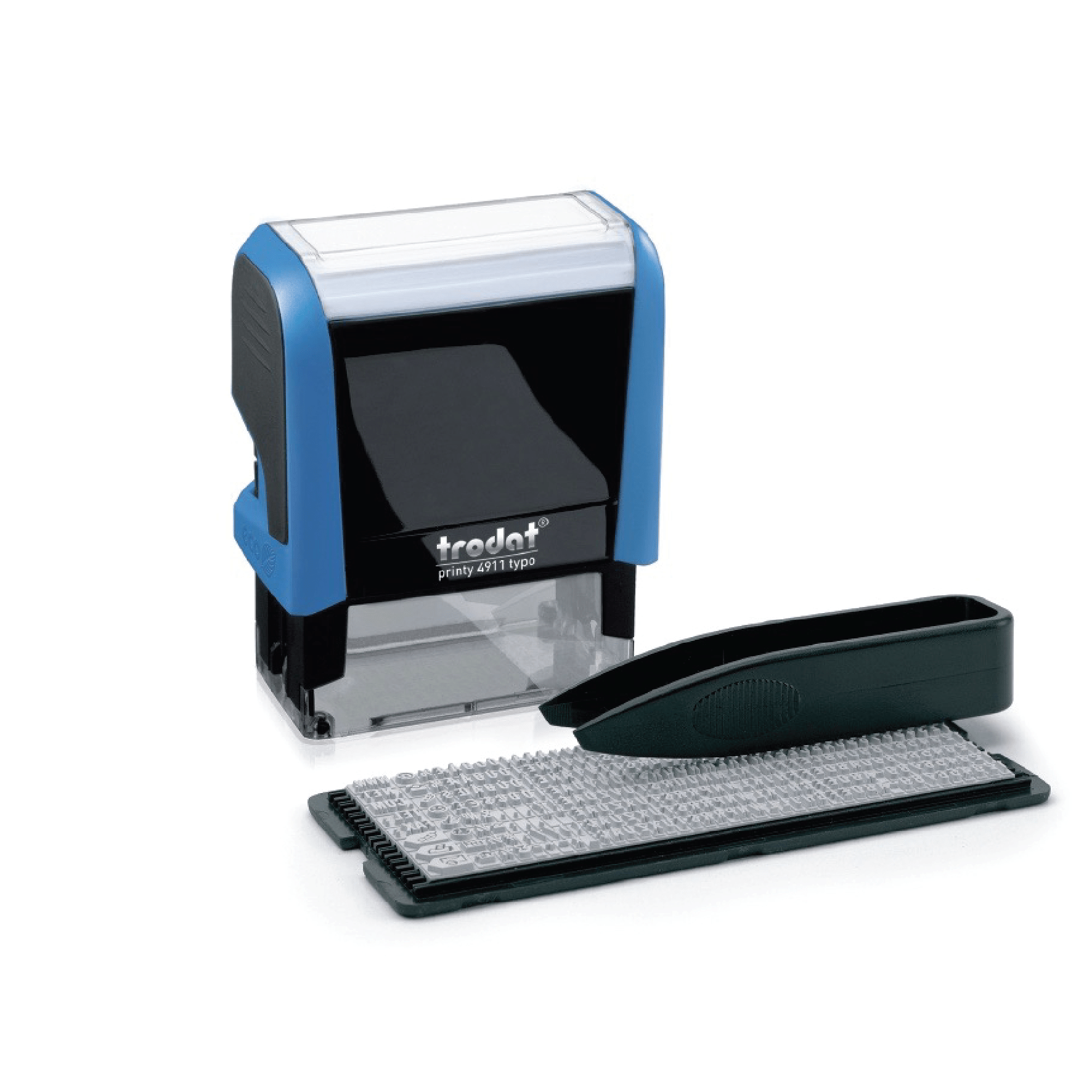 - This kit contains a Trodat printer 4911 Typo Stamp, 3 mm Character Set, black ink cartridge and tweezers.