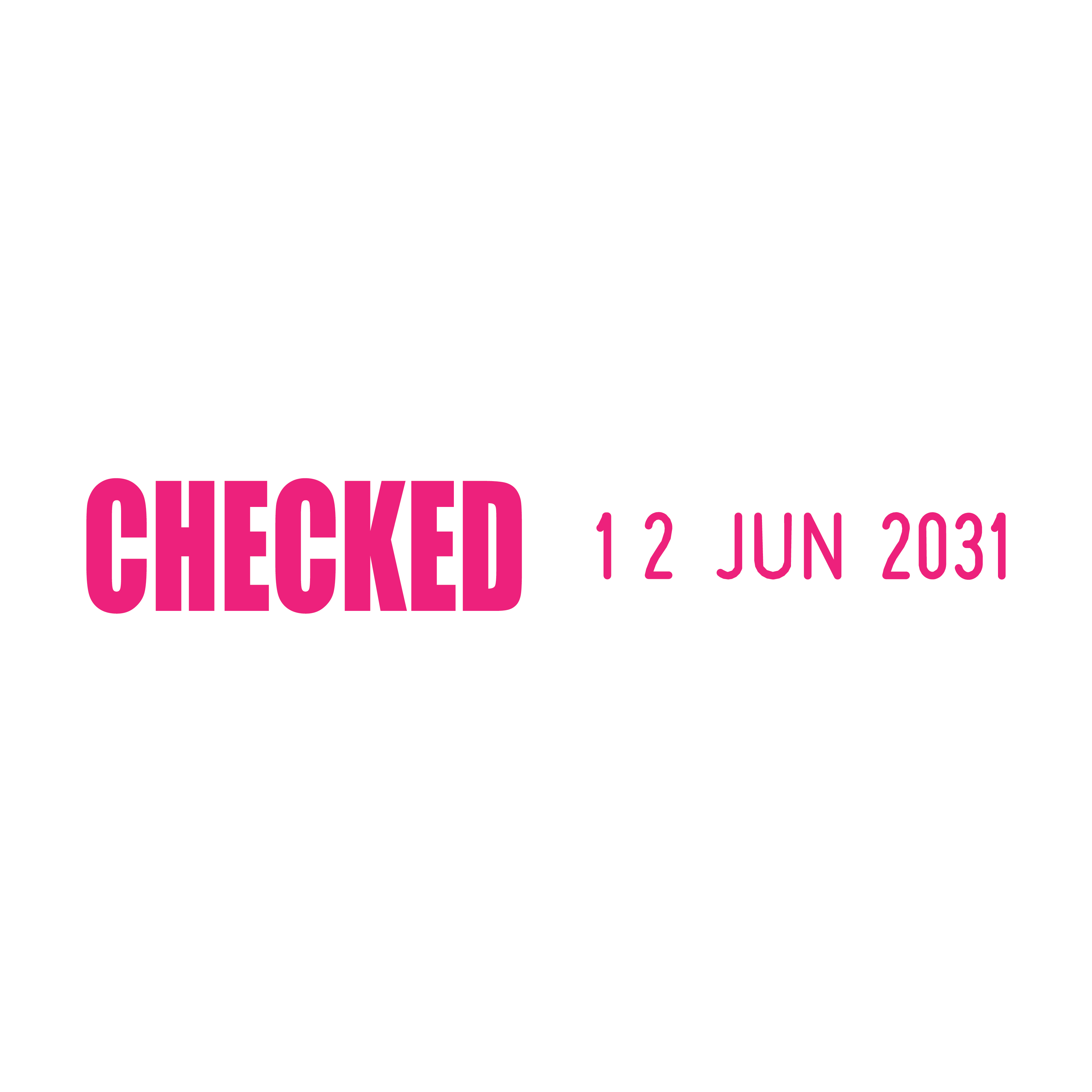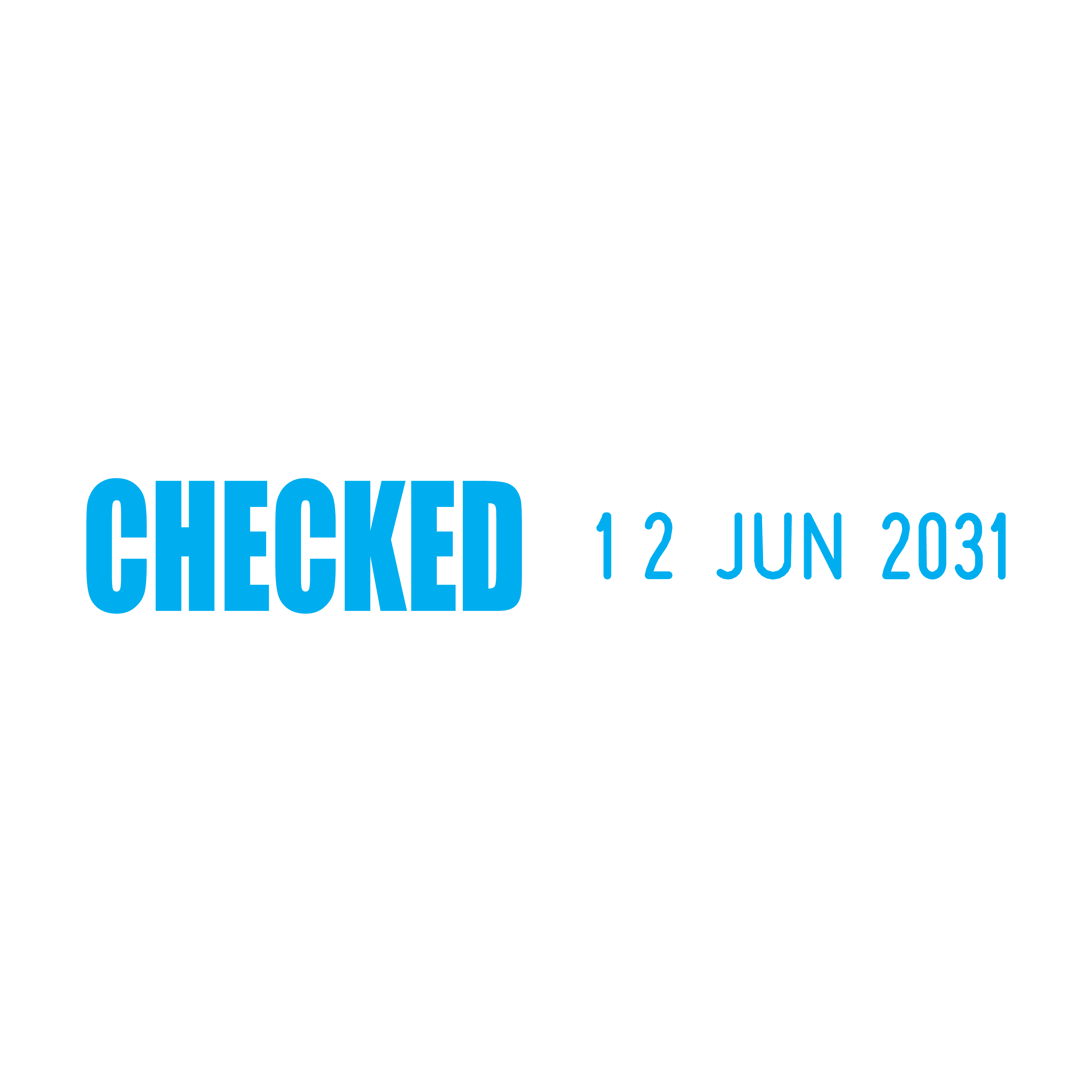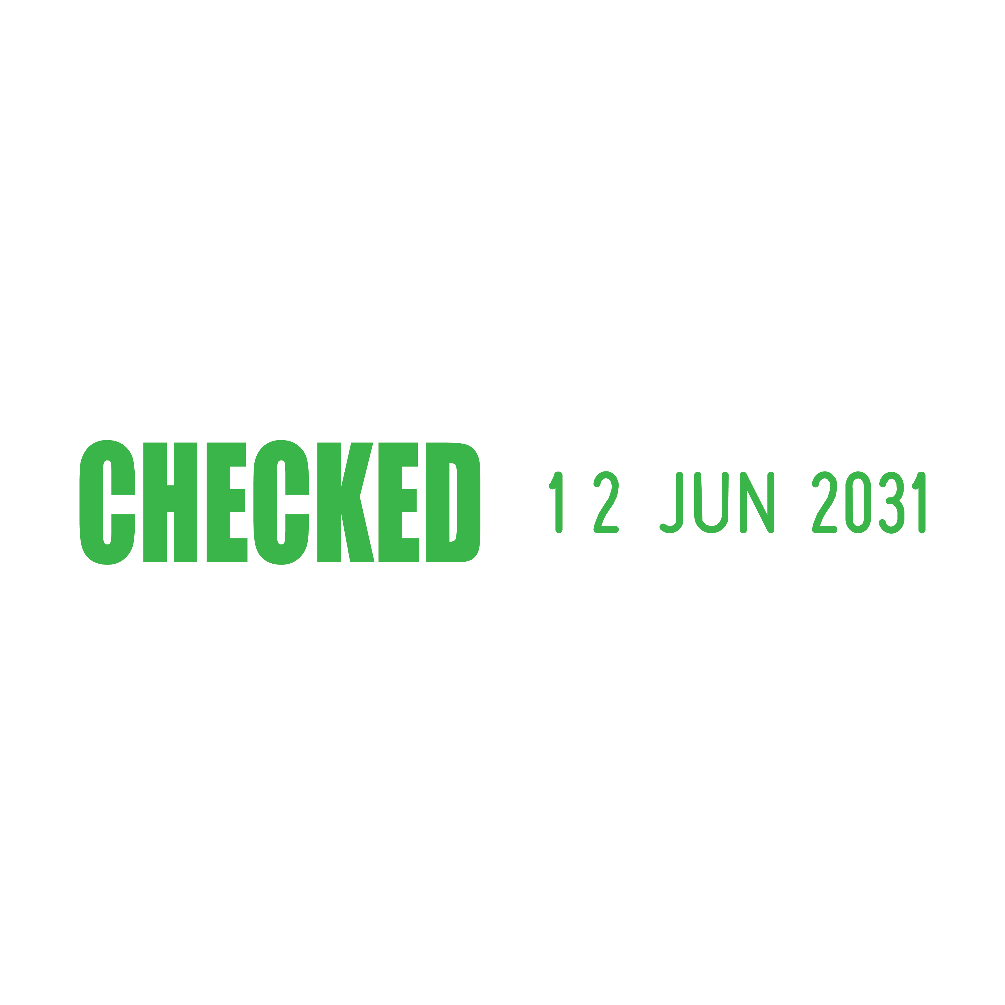 Simplify your document review process with the Checked Side-by-Side Date Stamp. Designed for efficient organisation and verification, this self-inking stamp features the text "Checked" measuring 23 x 7mm and a changeable date section measuring 3.8 x 20mm in a 01 JAN 2031 format, all in a 48mm wide side-by-side layout.