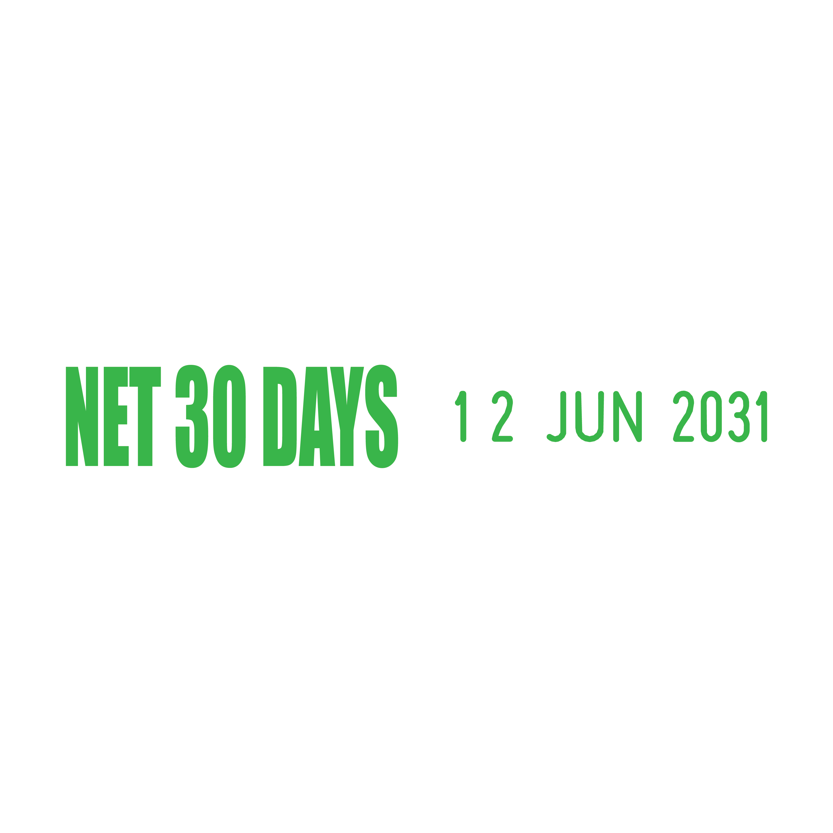 Stay on top of your payment deadlines with the Net 30 Days Side-by-Side Date Stamp.
