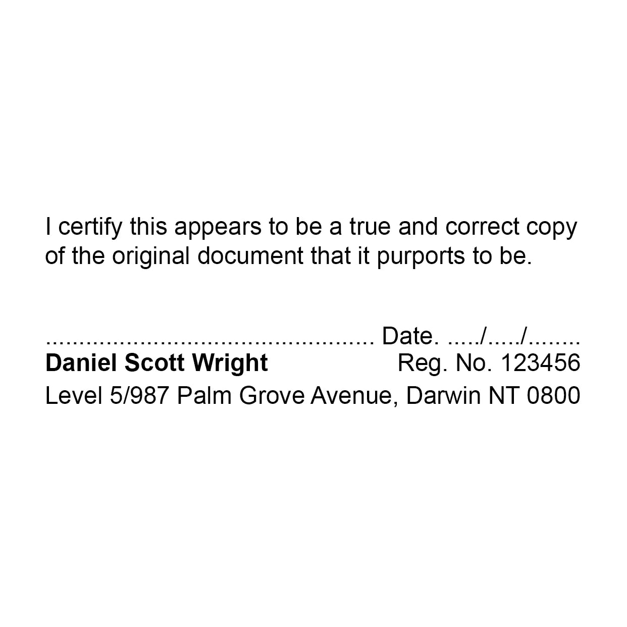 Northern Territory Justice of the Peace True Copy Stamp