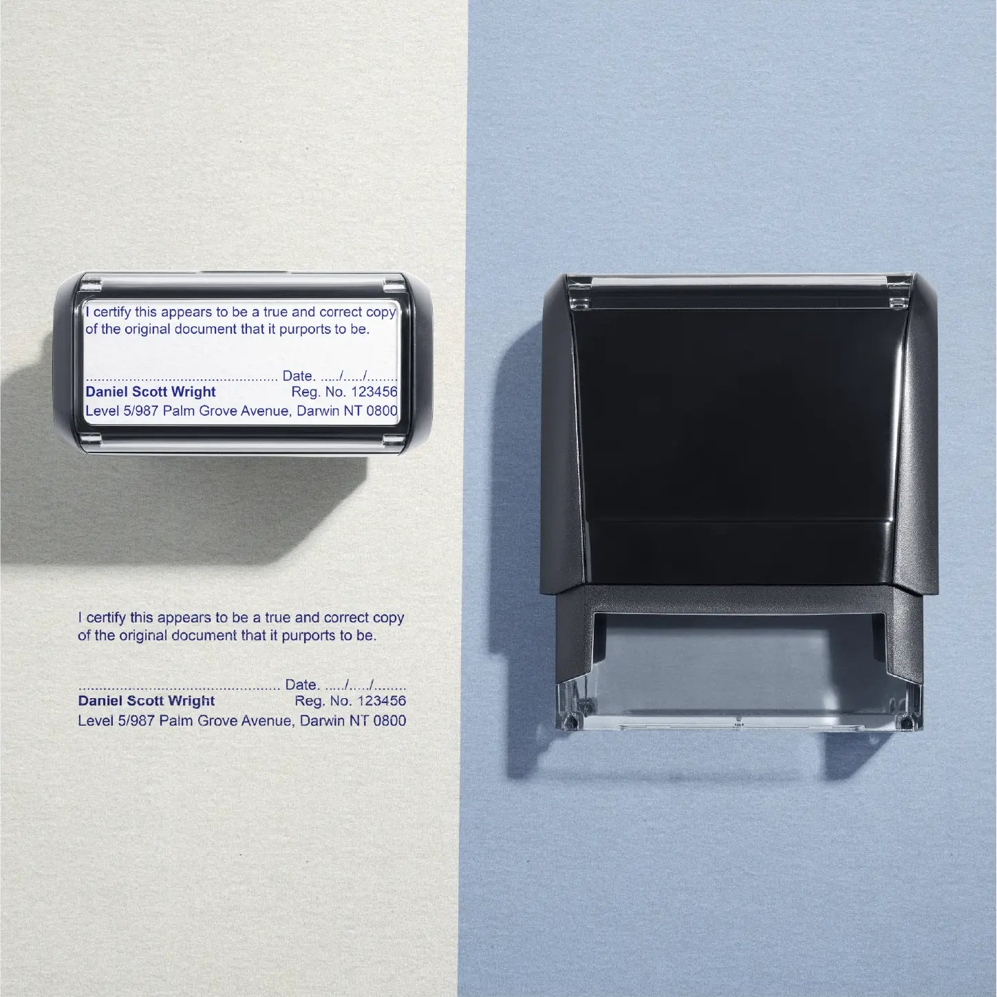 Beyond Its Looks: While its design and clarity are undeniably top-notch, it's the reliability of this stamp that sets it apart. Each impression is a testament to its quality, echoing the authenticity and commitment of a Justice of the Peace in the Northern Territory. The self-inking mechanism ensures you won't be reaching for an ink pad after every few uses, and the durability of the stamp guarantees it's built to last.