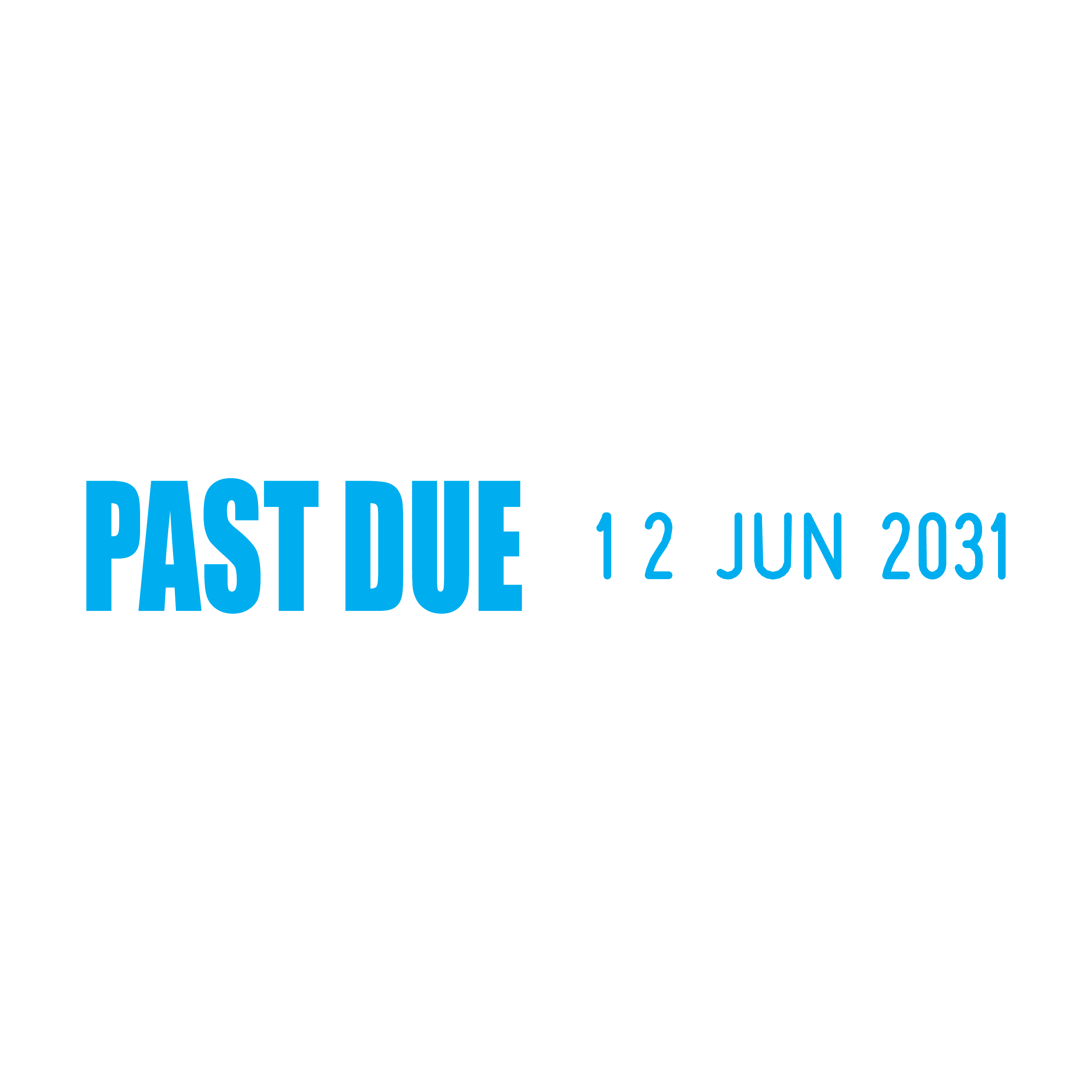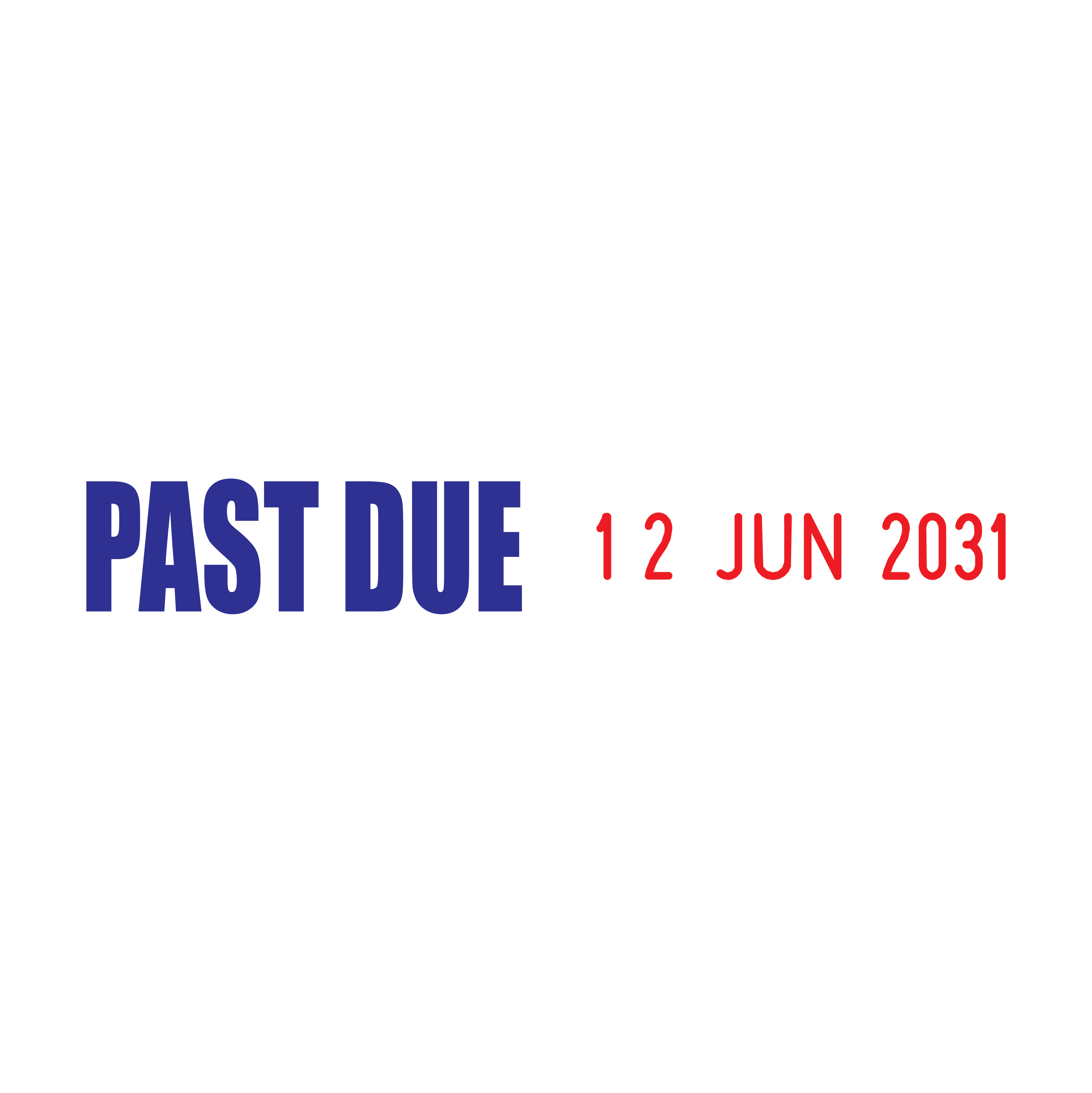Boost your financial organisation and reduce late payments with the Past Due Side-by-Side Date Stamp. This essential tool streamlines the process of marking invoices and financial documents, effectively notifying clients and customers of overdue payments. The 23 x 7mm "Past Due" text is positioned next to a changeable date section measuring 3.8 x 20mm, with an overall width of 48mm and the 01 JAN 2031 date format.